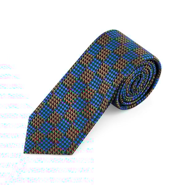 Brown Silk Geometric Tie with Blue and White Accents