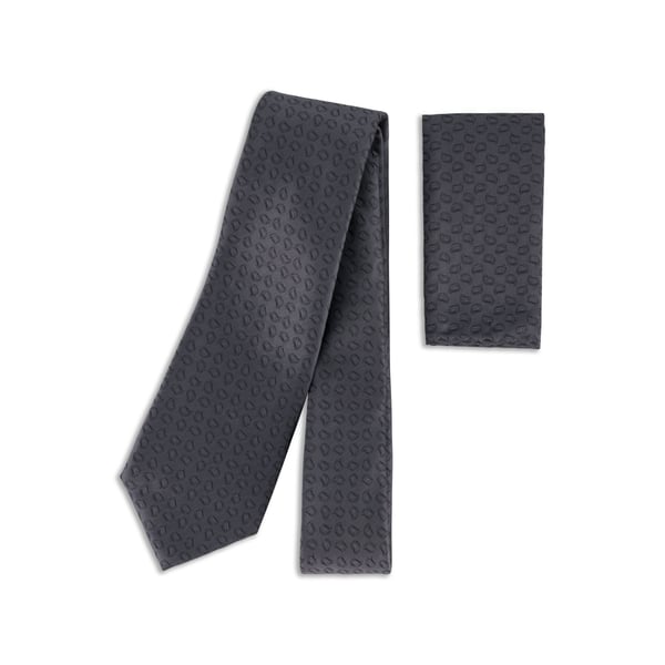 Charcoal Self Woven Paisley Tear Drop Tie & Pocket Square Set