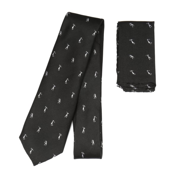 Black Golfer Motif Woven Tie