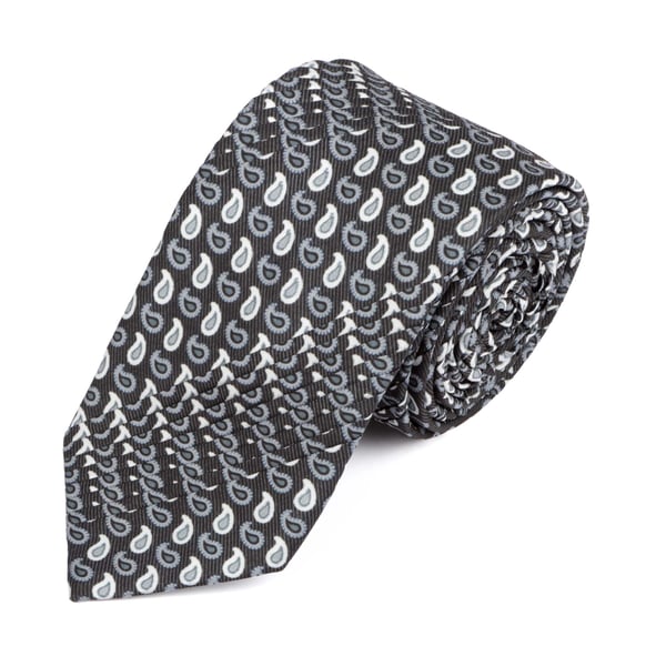 Black Tear Drop Paisley Pleated Tie
