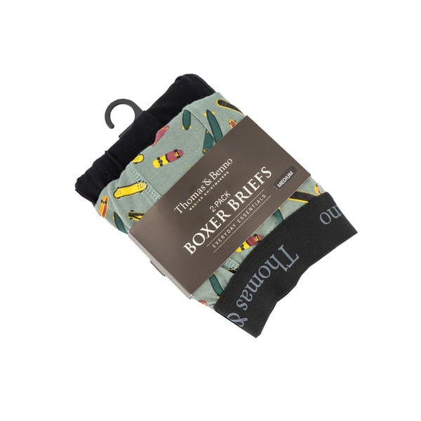 Olive Print and Plain Black Cotton Spandex Boxer Briefs | 2-Pack
